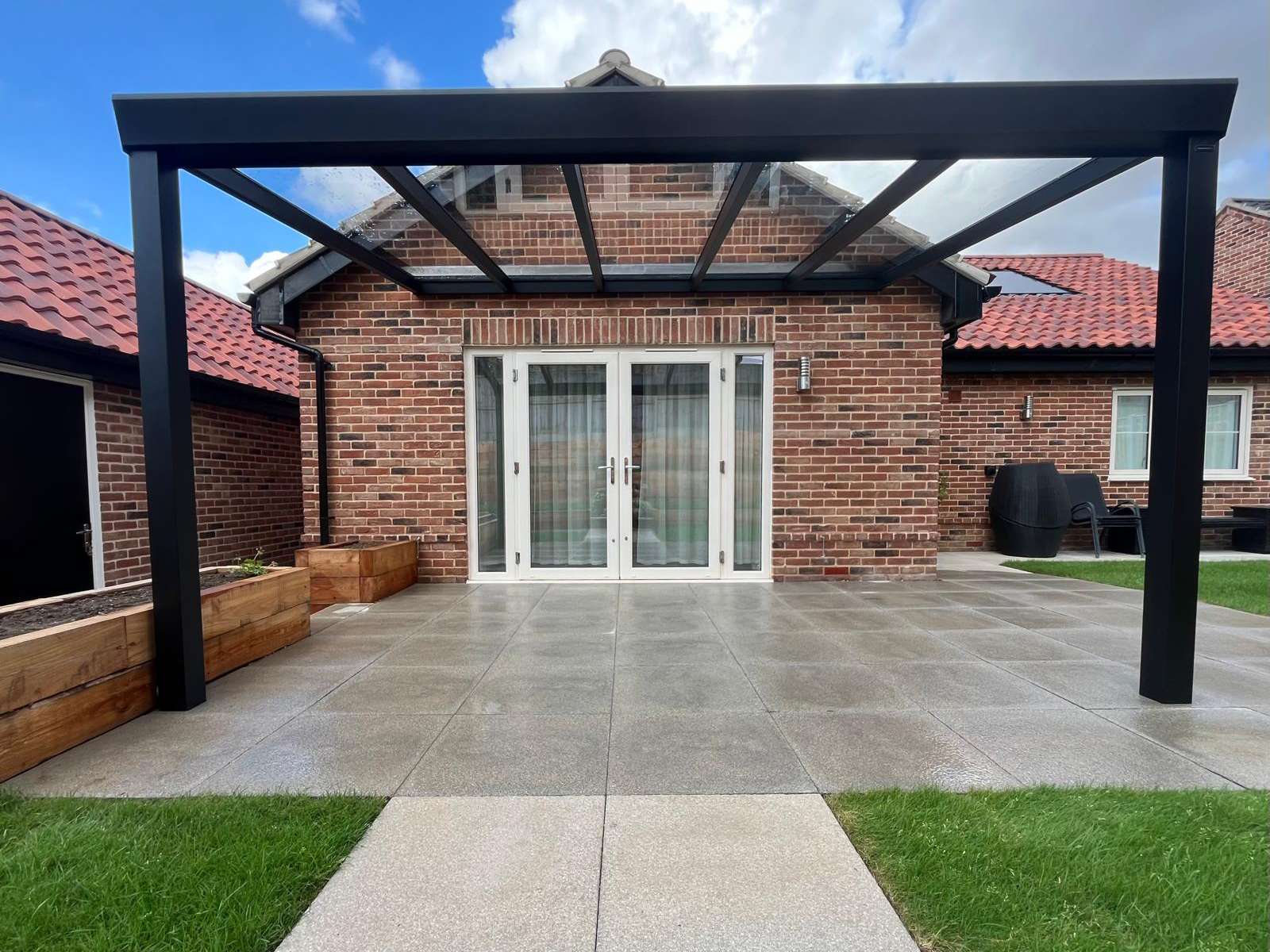 To create a glass veranda that seamlessly ties in with the home and perfectly frames the patio doors. Leaving the homeowner with an outdoor space, with added weather protection.